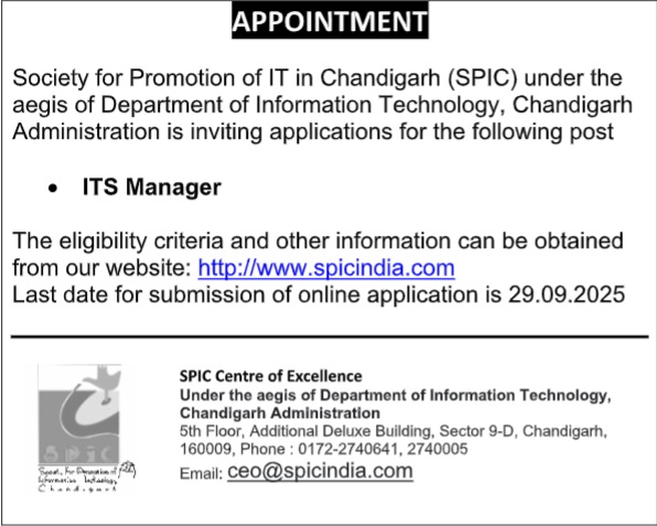 ITS Manager Recruitment 2025 – Chandigarh Transport Undertaking (CTU)