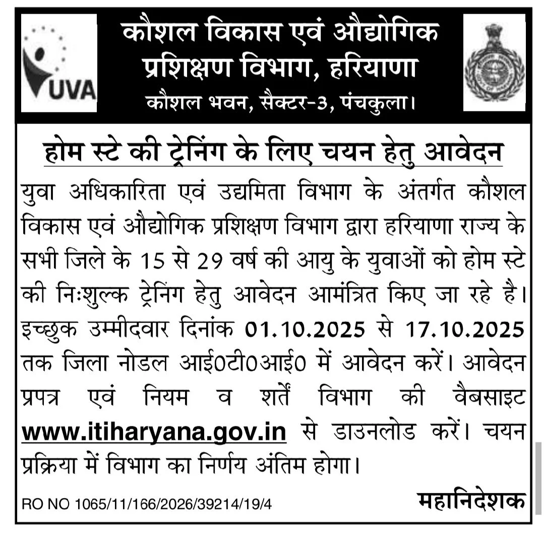 - Organization: The Skill Development and Industrial Training Department, Haryana